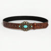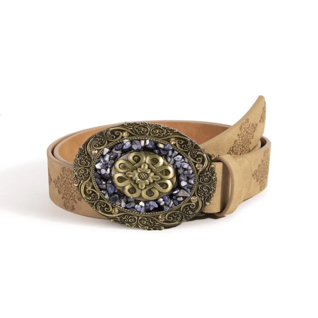1pc Women's Brown Vintage Carved Flower Metal Buckle Flower Embossed Belt Jeans Versatile Decorative Belt