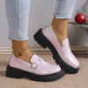 2024 Fashion Laser Loafers for Women Platform Metal Buckle Flat Shoes Woman Round Toe Slip On Casual Shoes Zapatas Mujer
