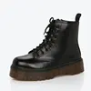 2024 Womens Autumn Winter Ankle Boots Lace Up Flat Heels Fur Cotton Padded Platform Shoes Woman Leather Motorcycle Botas Mujer