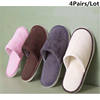 4 Pairs/Lot Mix Colors Coral fleece Men Women Cheap Disposable Hotel Slippers Cotton Slides Home Travel SPA Slipper Hospitality