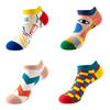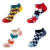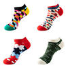 4 pairs Men’s And Women’s Latest Design Boat Socks Short Summer Socks Quality Business Geometric Lattice Colorful Cotton Socks