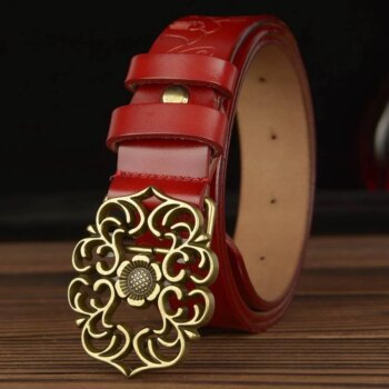 Sunflower Pattern Needle Buckle Belt Women Brown Fashion Business Women’s Belts White Black Cinturon Red Yellow