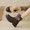 Autumn Winter New Women’s Ankle Boots High Quality Wool Warm Platform Leather Boots British Chelsea High Heels Ladies Snow Boot
