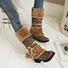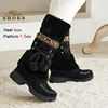 Ethnic Style Winter Outdoor Snow Warm Long Boots Thickened Fluff Women Tall Boots 4CM Anti-Slip Sole Fashion Cotton Shoes Woman