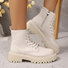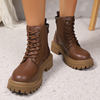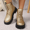 Fashion Gold PU Leather Platform Ankle Boots Women Thick Sole Lace Up Combat Booties Woman Autumn Winter Chunky Heel Short Boots