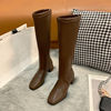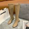 Fashion Women Black Block High Heels Long Boots New Winter Warm Knee High Boots Soft Leather Thigh High Boots Shoes