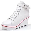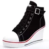 High Top Canvas Women Wedge Shoes Women’s Denim Ankle Lace Up Ladies Ankle Canvas Shoes Woman 8cm Heels Sneakers