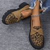 Leopard Faux Suede Loafers Shoes for Women Plus Size Platform Shoes Woman Bowknot Decoration Slip On Casual Shoes