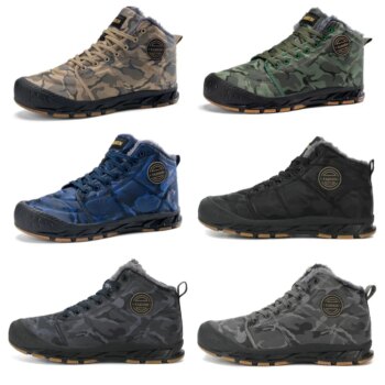 Winter Camouflage Warm Fleece Lined Hiking Boots Outdoor Off-Road Casual Large Size Sports Shoes Snow Boots Rubber Outsole