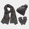 New Trendy Autumn Winter Cold Resistant Knitted Hat Set Women Leopard Print Outdoor Warm Woolen Hat Scarf Gloves Three Piece Set