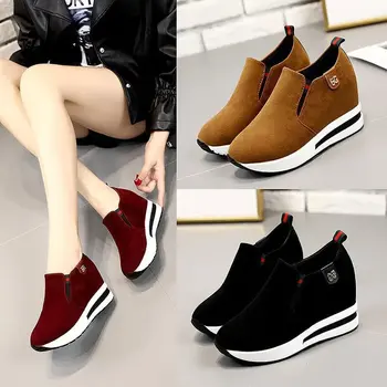 Wedge Shoes Women Suede Snow Boots Warm Plush Booties Slip-on Zipper Woman Winter Ankle Boot Women’s Shoes Ladies Platform Boots