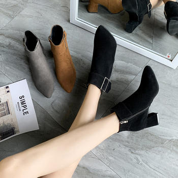 Women Warm Boots Autumn Winter Boots Classic Zipper Snow Ankle Boots Winter Suede Warm Fur Plush Women Shoes Booties Heels