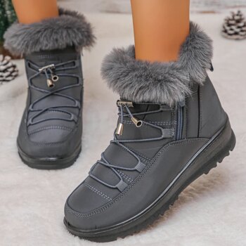 Faux Fur Women’s Waterproof Snow Boots Non Slip Warm Thicken Plush Ankle Boots Women Thick Sole Fluffy Cotton Padded Shoes 36-43