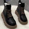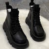Platform Short Shoes for Women with Laces Footwear Punk Booties Black Combat Lace-up Female Ankle Boots Round Toe Leather Boot