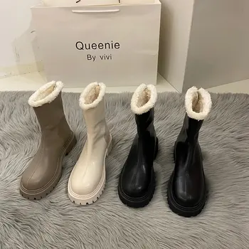 Women Boots Ladies Shoes Slip on Mid Calf Boots Platform Soft PU Leather Long Boot Footwear Woman Fashion Autumn Winter