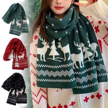 Winter Warm Scarf for Women Men Deer Elk Double-Sided Knitted Scarves Fashion Versatile Woolen Shawl Girls Christmas Present
