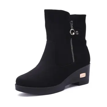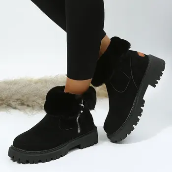 Women’s Boots Winter Boots With Fur Low Heels Snow Boots Ankle Bota Feminina Platform Booties For Women Winter Shoes Heeled