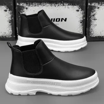 Men’s Biker Boot Autumn Winter Leather Boots Man Outdoor Casual Shoes High Tops Slip-on Hard-wearing Personality New Mans Shoe