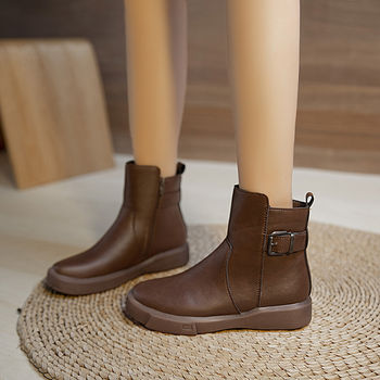 Women Shoes Boots Ankle New Autumn British Wind Genuine Leather Thick With Fur Ladies Short Boots Motorcycle heels boots
