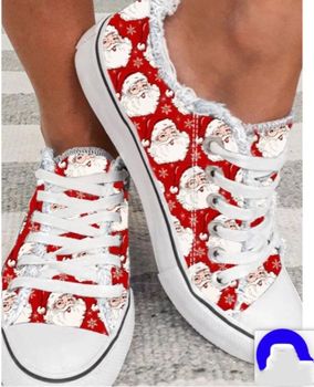 Women Sneakers New Fashion Popular Platform Shoes Round Head Lace Up Casual Shoes Christmas Pattern Low Top Women Sports Shoes