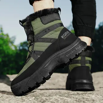 Mens Boots Outdoor Snow Shoes Plus Cotton Winter Non-slip Desert Boot Warm Plush High Tops Wear-resistant Thick Bottom Male Shoe