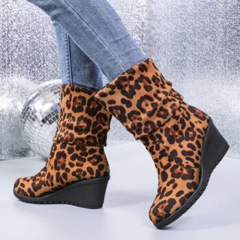 Woman Boots Leopard Print Autumn Women’s Short Boots Pointed British Zipper Non Slip Fashion Ankle Boots Plus Size