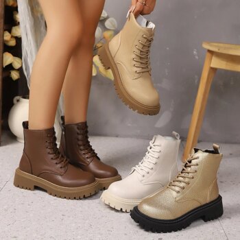 British Platform Plus Size Women’s Boots Classic Big Toe Booties Lace-Up Versatile Casual Shoes