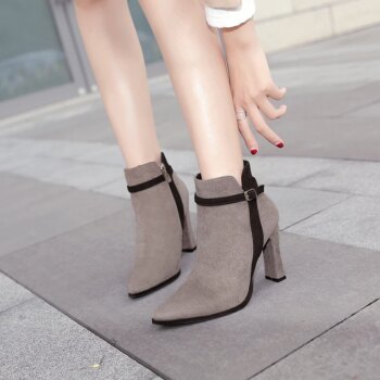 Black Brown Thick Heel Ankle Boots Women Winter Shoes Nice Elegant High Heel Pointed Toe Keep Warm Short Booties Ladies