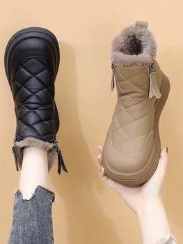 New Women Winter Boots Chunky Sneakers Ankle Boots Woman Zipper Buckle Thick Sole Platform Waterproof High Top Female Booties