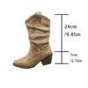 Retro Brown V-Cut Western Boots Women's Mid-Calf Pointed Toe Autumn Winter Rubber Sole Comfortable Shoes for Ladies