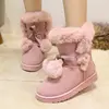 Sweet Pink Furry Non Slip Snow Boots Women 2025 Winter Warm Fluffy Fur Flats Ankle Boots Cute Pom-Pom Designer Shoes 41