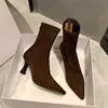 Vintage Women Ankle Boots Fashion Pointed Toe Shoes Autumn Winter High Heel Ladies Elegant Stretch Slim Short Booties