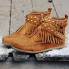 Vintage Women Boots Suede Ankle Boots Fringe Women Shoes Winter Boots Women Side Zipper Casual Shoes Round Toe Ladies Snow Boot