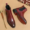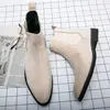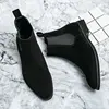 Men Chelsea Boots Flock Round Toe Business Boots for Men with Low Heels Slip on Men Boots Bottes Pour Hommes 2025