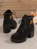 Women Retro Round Toe Chunky Heels Ankle Boots Autumn New High Heels Shoes Woman Lace Up Platform Short Booties Big Size 42
