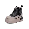 Women Shoes leather 8cm Platform Boots Wedge Hidden Heel Zip Autumn Warm Fur Winter Shoes Sneakers