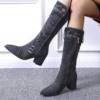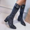 Women’s High Fashion Boots Zipper Short Chunky Retro Breathable denim Shoes Heels Female Platform Heel booties for women