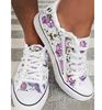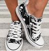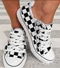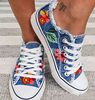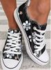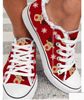 Women’s Red Print Canvas Shoes Plus Size Christmas Shoes Casual Lace up Flat Vulcanized Shoe Shallow Mouth Comfortable Sneakers