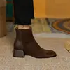 Women’s Shoes Hot Sale Zipper Women’s Boots Spring Autumn Square Toe Suede Solid Short Barrel Chunky Heels Fashion Boots