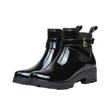 Rain Boots Women Leather Pu Ankle Bootie Waterproof Rubber Walking Shoes Girls Fashion Ladies Winter Shoes for Outdoor Rainy Day