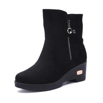 Women Warm Boots Autumn Winter Boots Classic Zipper Snow Ankle Boots Winter Suede Warm Fur Plush Women Shoes Booties Heels