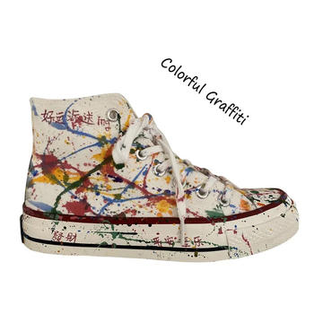 Colorful Graffiti Men Canvas Shoes Spring Fall Male Sneakers Shoes Ins Unisex Punk Street Style Man Boys High Top Canvas Shoes