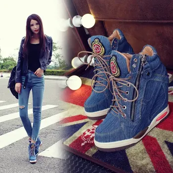 2024 New Women’s Plus Sizes Sneakers High Top women Denim Canvas Shoes Thick Sole Girls Students Ankle Canvas Boots Lace Up