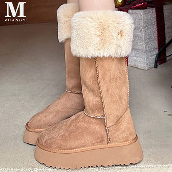 Fur Platform Women High Boots Suede Flats Shoes Woman 2025 Trend Winter Fashion New Brand Cozy Walking Casual Snow Botas Female