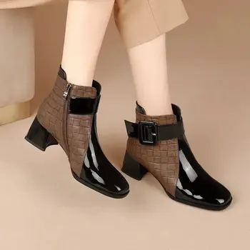 2024 High Quality Ladies Shoes Side Zipper Women’s Boots Fashion Color Matching Modern Boots Women New Belt Buckle Ankle Boots