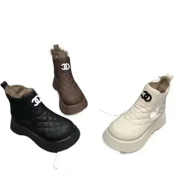 Winter Women Short Plush Warm Snow Boots Casual Shoes New Suede Fur Chelsea Ankle Boots Flats Platform Ladies Shoes