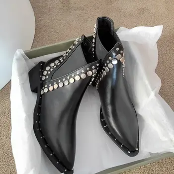 Women’s Ankle Boots Autumn New Versatile Pointed Rivet Personalized Short Boots for Women Plus Size43