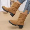 Women’s Suede Mid-calf Boots New Fashion Round Head Thick Heel Short Boots Autumn Winter Woman Large Size Casual Platform Shoes